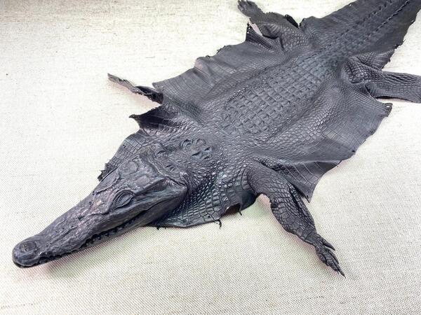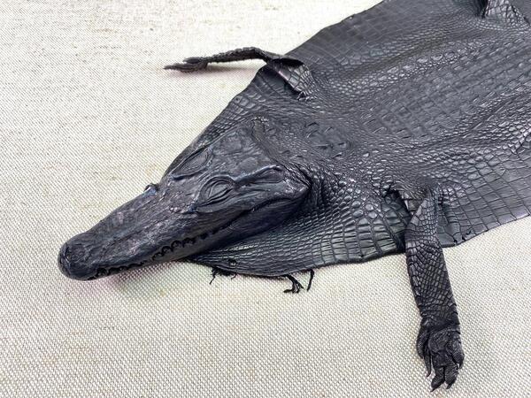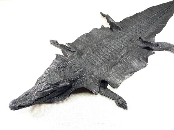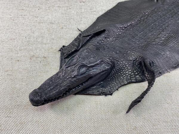 Crocodile leather back part with head and paws 27cm black color 1550