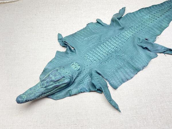 Crocodile leather back part with head and paws 34cm emerald color 1567
