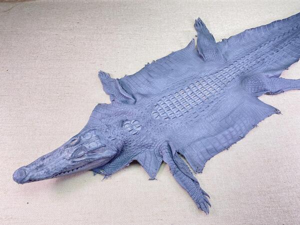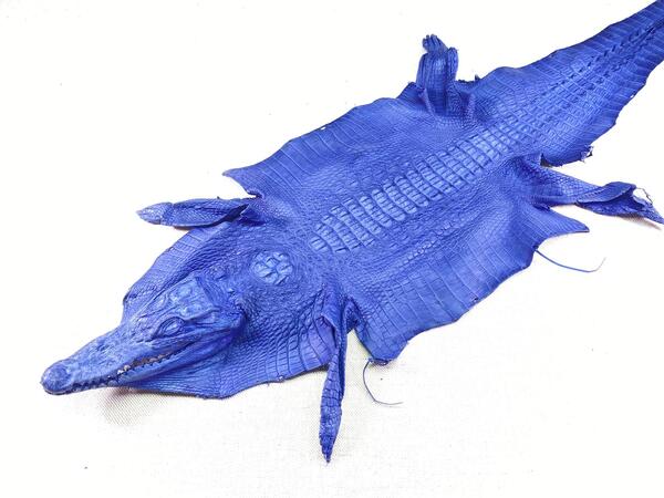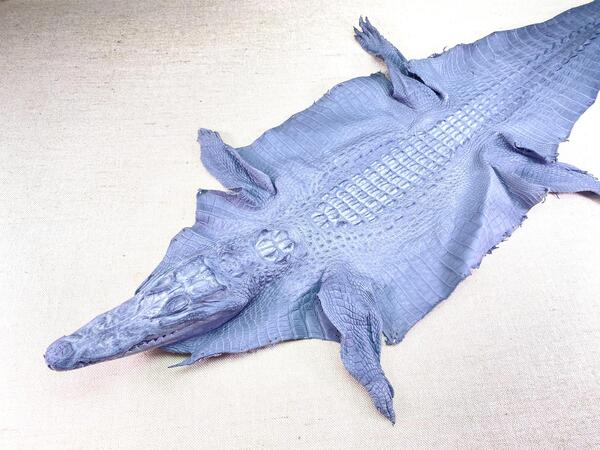 Crocodile leather back part with head and paws 26cm blue color 1565