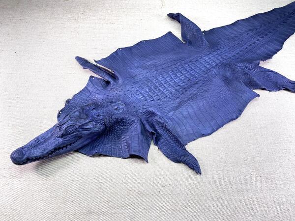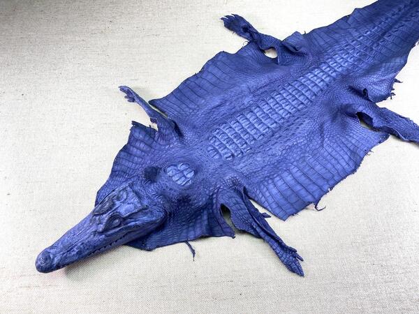 Crocodile leather back part with head and paws 34cm navy blue color 1557