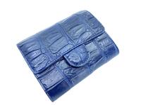 New model of trifold wallet for women made from genuine Siamese crocodile belly part, with very nice texture of crocodile skin. For manufacturing of this wallet used soft and elastic croc skin, what show on high quality of tanning of crocodile leather. This is very compact and very roomy wallet. Wallet consist from one banknotes compartment, six cards slots and four sides pockets. Wallet closing on button. Calfskin and textile used as a lining material.