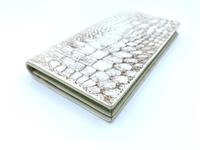 Genuine crocodile skin long wallet bifold. For manufacturing of this wallet used genuine crocodile skin, Siamese crocodile leather. Skin is soft and gentle. High-end manufactured skin. On this wallet we can see nice and unique texture of knee of Siamese crocodile and on another side of wallet side part of crocodile hide. Skin joined (glued) very professionally. This model of long bifold wallet can be used by men and ladies. Naturally what men usually prefer more classical men’s colors such a black, brown, navy-blue and tan. And women's choice is more colorful and bright such a white, himalayan, red, pink etc.