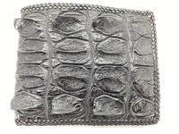Crocodile skin bifold wallet tail part with braided trim and coins pocket