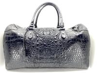 Duffle bag made from genuine Siamese crocodile skin, hornback part of crocodile hide. As a main decoration on one surface of duffle bag located big crocodile nape. On another side of bag located hornback part of crocodile hide. Bottom part of duffle bag also made from crocodile skin, Sides part made from crocodile skin as well. As a lining material used calfskin. Detachable shoulder belt with facing from crocodile skin at set.