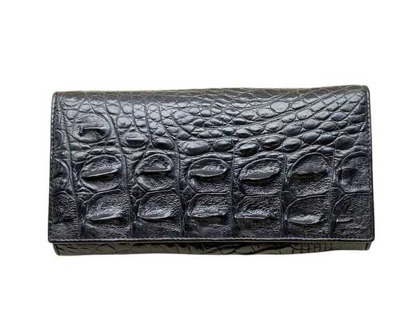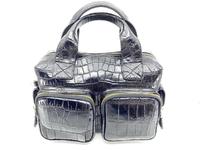 Crocodile skin handbag can be considered and used as a shoulder bag. This model can be used both men and women. For manufacturing of this handbag used from genuine Siamese crocodile skin, belly part. This handbag will be loved by those of you who prefer to use shoulder bag average size with a lot of pockets. On main surface of handbag located 2 pockets with zip and one pocket have a patch pocket. On both sides of this handbag have patch pockets with valve. On back side of handbag located convenient zip pocket. On the top of handbag located zip what closing assess into the bag. Inside crocodile handbag made in one volume, with few pockets on sides of bag. As a lining material used calfskin black color. Width 38 mm detachable shoulder belt with facing by crocodile skin is at set.
