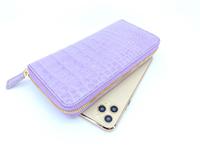 Crocodile skin long zip wallet small size. One of most budget crocodile skin wallet. For manufacturing of this zip wallet used belly part pf Siamese crocodile skin. Long Zip Wallet made from one whole piece of crocodile skin, this increasing valuable of his wallet. You will love this wallet if you prefer minimalist wallets with good functional. This wallet can be use both men and women. Wallet consist from one zip compartment. Inside of this wallet has cards slots, compartments for banknotes and one flat zip pocket on the middle of wallet. Calfskin and textile used as a lining material.
