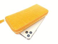 Crocodile skin long zip wallet small size. One of most budget crocodile skin wallet. For manufacturing of this zip wallet used belly part pf Siamese crocodile skin. Long Zip Wallet made from one whole piece of crocodile skin, this increasing valuable of his wallet. You will love this wallet if you prefer minimalist wallets with good functional. This wallet can be use both men and women. Wallet consist from one zip compartment. Inside of this wallet has cards slots, compartments for banknotes and one flat zip pocket on the middle of wallet. Calfskin and textile used as a lining material.