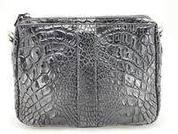 Crocodile skin shoulder bag, made from genuine Siamese crocodile. On main surface of bag and on the back side of bag used crocodile skin knee part of crocodile. Sides parts of bag are made from knee part crocodile skin. Shoulder belt made from cow skin with facing of crocodile skin. On the top of bag on both sides of zip are made two pockets. Inside bag made in one volume, have couple of pockets, as a lining material used textile.