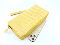 Crocodile skin wallet with 2-zips also this wallet can call crocodile skin clutch. For manufacturing of this wallet used belly part of Siamese crocodile skin. Wallet made from one whole piece of crocodile skin, this increasing valuable of this zip wallet. This type of wallet can be used both men and women. If you prefer roomy and spacious zip wallet - this is your choice! For extra convenience, this wallet equipped detachable handle from crocodile skin. Wallet consist from two independents zippered compartments. First compartment intended for cards, banknotes and other small items, in compartment has flat zip pocket. Another compartment consist from 4 volumes and intended for documents, cellphone, compartment big enough even for IPhone 12pro max. Calfskin and textile used as a lining material.