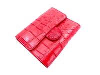 This is new model of women’s wallet, trifold wallet from Siamese crocodile leather. Wallets of this model will be loved those of you who prefer wallets of average sizes. For manufacturing of this wallet used belly part of crocodile skin. Skin soft and elastic. On main surface located flap with button. Wallet consist from one banknotes compartment, six cards slots, and extra four pockets. Calfskin and textile used for lining material