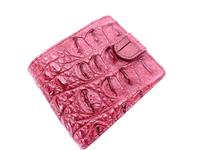 Crocodile skin wallet with coins pocket and strap, for manufacturing of this wallet used horn back part of genuine Siamese crocodile skin. Wallet made from one whole piece of crocodile skin this fact-increasing valuable of this wallet. On face of wallet, we see horn back part of skin, which becomes to the belly part on backside of wallet. This is most popular model of wallet. This wallet can be used booth men and women. Wallet with very good functional, two banknotes compartments, cards slots, coins pocket, 4 extra pockets from middle part of wallet and outer strap. Calfskin and textile used as a lining material.