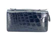 Large, roomy and comfortable clutch with two zippers made of genuine crocodile leather. At the top of the clutch there is a comfortable handle, the height of the handle is 5 cm. The clutch is equipped with a side handle. The clutch consists of a pair of independent compartments, inside there is a compartment for documents, a phone, card slots, a flat compartment with a zipper and a compartment for banknotes. Calfskin and textile used as lining materials.