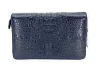 Large, roomy, functional clutch with three zippers. This clutch is made of genuine crocodile leather. The clutch consists of three independent compartments, each of which closes with a separate metal zipper. Inside the clutch there are convenient pockets for cards, zipped compartments, document compartments, and an iPad compartment. Calfskin and textiles are used lining materials.