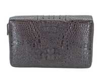 Large, roomy, functional clutch with three zippers. This clutch is made of genuine crocodile leather. The clutch consists of three independent compartments, each of which closes with a separate metal zipper. Inside the clutch there are convenient pockets for cards, zipped compartments, document compartments, and an iPad compartment. Calfskin and textiles are used lining materials.