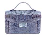 Men's bag made of genuine crocodile leather. Crocodile leather with a tail texture used to sew this bag. There is a handle at the top of the bag. The bag closes with a metal lock. The side inserts are made of crocodile leather. There are rings for the shoulder strap on the side inserts. A removable shoulder strap is included with the bag. The bag consists of two compartments and one front pocket. Calfskin leather used as a lining material.