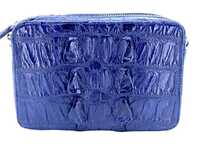 Crocodile leather bag, navy blue color tail part