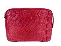 Small, comfortable crocodile bag. The bag is rectangular shape, with two zippers at the top. The bag is equipped with a removable shoulder strap. Inside the bag there are pockets, the lining material is calfskin.