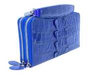 A comfortable clutch made of genuine crocodile leather with a tail texture. The upper part of the clutch has a comfortable handle, the height of the handle is 5 cm. The clutch consists of two zipped compartments, inside there are pockets for cards, documents, banknotes, a flat compartment with a zipper. The clutch is equipped with a removable shoulder strap.