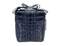 Crocodile leather shoulder bag for men, black color with tail part texture.