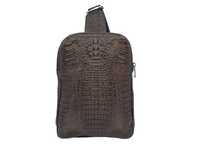 Sling bag made of genuine crocodile leather, the back part of the skin is caiman, the front part of the bag is decorated with crocodile leather, the back part of the bag is made of calfskin. A convenient U-shaped metal zipper is sewn into the upper part of the bag. Inside the bag is single-volume, inside the bag there are convenient pockets, calfskin is used as a lining material.