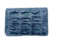 Convenient, women's wallet made from genuine crocodile leather of medium size. The wallet is made from one whole piece of crocodile leather, which increases the value of this wallet. This wallet has increased functionality. The trifold wallet closes with a metal button. The wallet consists of compartments for cards, a compartment with a transparent window, a compartment for banknotes and a compartment for coins or another small and valuable items. Genuine calfskin in crocodile color used as the lining material.