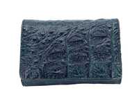 Convenient, women's wallet made from genuine crocodile leather of medium size. The wallet is made from one whole piece of crocodile leather, which increases the value of this wallet. This wallet has increased functionality. The trifold wallet closes with a metal button. The wallet consists of compartments for cards, a compartment with a transparent window, a compartment for banknotes and a compartment for coins or another small and valuable items. Genuine calfskin in crocodile color used as the lining material.