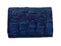 Convenient, women's wallet made from genuine crocodile leather of medium size. The wallet is made from one whole piece of crocodile leather, which increases the value of this wallet. This wallet has increased functionality. The trifold wallet closes with a metal button. The wallet consists of compartments for cards, a compartment with a transparent window, a compartment for banknotes and a compartment for coins or another small and valuable items. Genuine calfskin in crocodile color used as the lining material.
