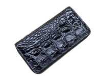 Crocodile leather 2-zip wallet black color.