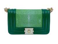 Women's bag made of genuine polished stingray leather. The bag made in the Chanel style. The central part of the bag is made of stingray leather, the side inserts made from calfskin.