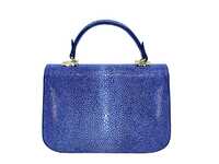 Women’s handbag made from genuine polished stingray leather. Women’s handbag of rectangle shape. On the top of bag has convenient handle. The distance from the top of bag up to the handle is 9cm. On the face of bag located flap, flap decorated by white-eye. On backside of bag has flat pocket. Inside of bag has zip pockets and patch pocket. Soft cloth used us a lining material.