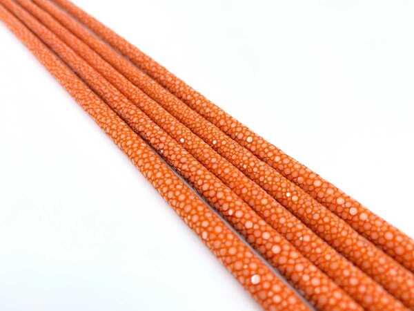 Stingray leather cords made by skilled workers from natural polished stingray leather. Stingray leather cords made from stingray skins of various colors and sizes. Stingray leather cords used in the production of jewelry and bijouterie. The length of a stingray leather cord of 50 cm allows you to make either a pair of bracelets or one necklace, collar or choker.