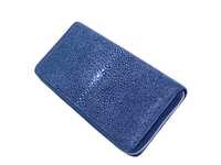 Zippered wallet made of genuine polished stingray leather. Genuine polished stingray hides used to make wallets of this model. Inside of this wallet are slots for cards, sections for banknotes, and zippered pockets. Calfskin used as a lining material.