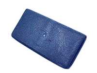 Genuine polished stingray leather 1 zip wallet dark blue color