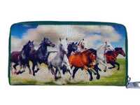 Genuine stingray leather long zip wallet with color print of herd of horses