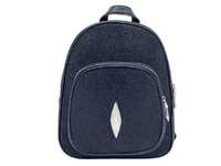 Modern, classical women’s backpack from genuine stingray leather and calfskin. Front side of this backpack made from genuine stingray hides. On front face has patch zip pocket, size of pocket 18x18cm, thickness of pocket 3cm. Backpack consist from two independents zip compartments. The backpack straps are adjustable. Soft fabric used as lining material. Inside of backpack made pockets.