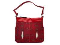 A comfortable, roomy women's shoulder bag made of genuine stingray leather. This bag can carry folders with A4 documents. The handle height is 30 cm. A zipper is sewn into the upper part of the bag. There are pockets inside the bag. Red textile is used as a lining material.