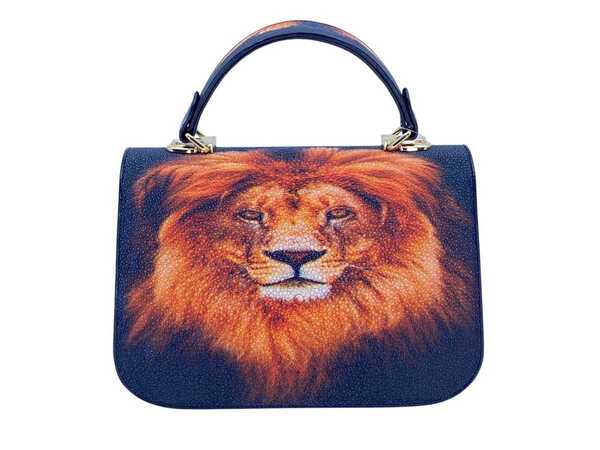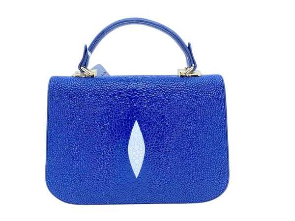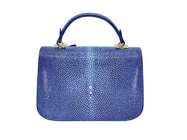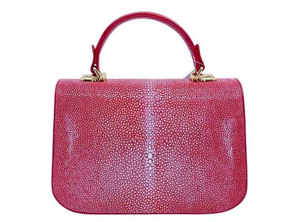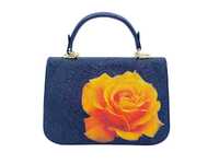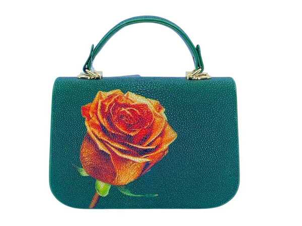 Women’s handbag made from genuine stingray leather. Women’s shoulder bag of rectangle shape. On the top of bag has convenient handle. The distance from the top of bag up to the handle is 9cm. On the face of bag located flap. Both sides of the bag and the side surfaces decorated with print of yellow rose. On backside of bag has flat pocket. Inside of bag has zip pockets and patch pocket. Soft cloth used us a lining material. The bag is equipped with a removable shoulder strap. Length 130 cm, width 1.5 cm.