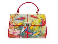 Women's bag made of genuine stingray leather. The bag is decorated with a print of swimming fish. At the top of the bag there is a handle, the height to the handle is 11 cm. The front flap is fixed to the bag with a metal lock. The bag inside is made in one volume. The lining material is textile. The bag inside consists of several compartments, which is very convenient. A removable shoulder strap is included.