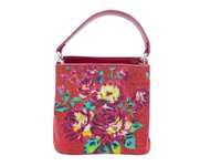 Women's bag made of genuine stingray leather. The bag is decorated with colorful prints. At the top of the bag there is a high handle, the height of the handle is 13 cm, which allows you to wear this bag both in the shoulder bag and on the forearm. In the upper part of the bag there is a zipper that blocks access to the main volume of the bag. Inside of bag there is a zippered pocket, soft fabric is used as a lining material. Removable shoulder strap included.