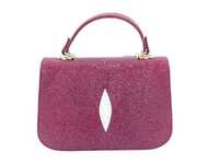 Women’s handbag made from genuine stingray leather. Women’s handbag of rectangle shape. On the top of bag has convenient handle. The distance from the top of bag up to the handle is 9cm. On the face of bag located flap, flap decorated by white-eye. On backside of bag has flat pocket. Inside of bag has zip pockets and patch pocket. Soft cloth used us a lining material.