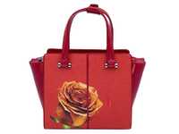 Stingray leather bag red color with rose print.