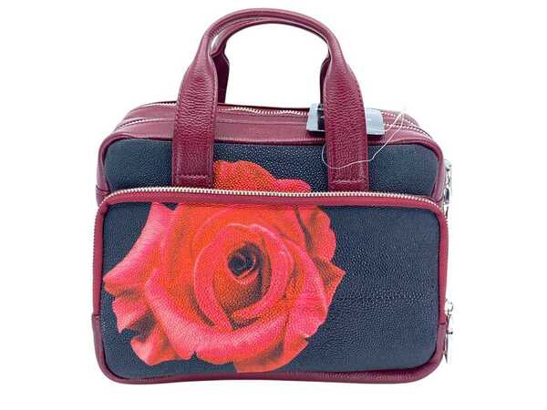 A comfortable women's bag made of genuine stingray leather. The front and back of the bag are made of stingray leather. The side inserts are made of calfskin. The upper part of the bag has comfortable handles made of genuine calfskin. The height of the handles is 10 cm. The bag consists of two zipped compartments and a front patch pocket. Metal zippers are sewn into the upper part of the bag, blocking access to the inside of the bag. The bag is equipped with a removable shoulder strap. There are comfortable pockets inside the bag. Textile used as a lining material.