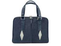 A convenient document bag made of genuine stingray leather. The upper part of the bag has comfortable calfskin handles. The height of the handles is 15 cm. The front and backside of the bag are made of stingray leather and decorated with vertical white eyes. Inside the bag there are pockets: with zippers and patch pockets. Soft fabric used as a lining material.