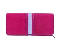 Large, comfortable, folding classic women's long wallet made of genuine stingray leather. The central part of the wallet is made of stingray leather, which called a Row Stone and this strip is painted white color. On the back of the wallet located wide flat pocket. Inside of wallet is a large zipped compartment, compartments for cards, banknotes and other compartments, including zipped ones. Calfskin and textiles used as lining material.