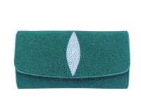 Stingray leather long wallet for women dark green color.