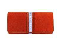 Stingray leather long wallet for women orange color with white lane