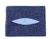 The distinctive feature of this wallet is its height, the height is 8 cm, it is less in height than classic folding wallets. The height of a classic folding wallet is 9.5 cm minimum. The wallet is sewn from natural coarse-grained stingray leather, the front part of the wallet is decorated with a white eye. The wallet made from one whole piece of stingray skin, which increases its value. The wallet consists of a compartment for banknotes, slots for cards. Calfskin is the lining material.
