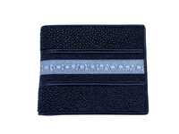 Wallet from genuine stingray leather black color with white strip of row stone.