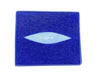 Classic, two-fold wallet made of genuine stingray leather. The front surface of the wallet decorated with a vertical white eye, on the back of the wallet there is a convenient pocket. Inside, the wallet consists of compartments for banknotes, card slots and a swivel compartment with two transparent windows. Genuine calfskin and textile used as lining material.