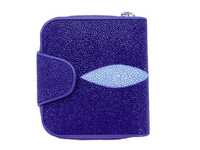 Small, folding, functional women's wallet made of genuine stingray leather. The wallet consists of an external zippered compartment, card slots, and a banknote compartment. The wallet is equipped with an external strap. Wallets of this model will appeal to those of you who prefer compact but functional wallets. Calfskin and textile used as lining materials.